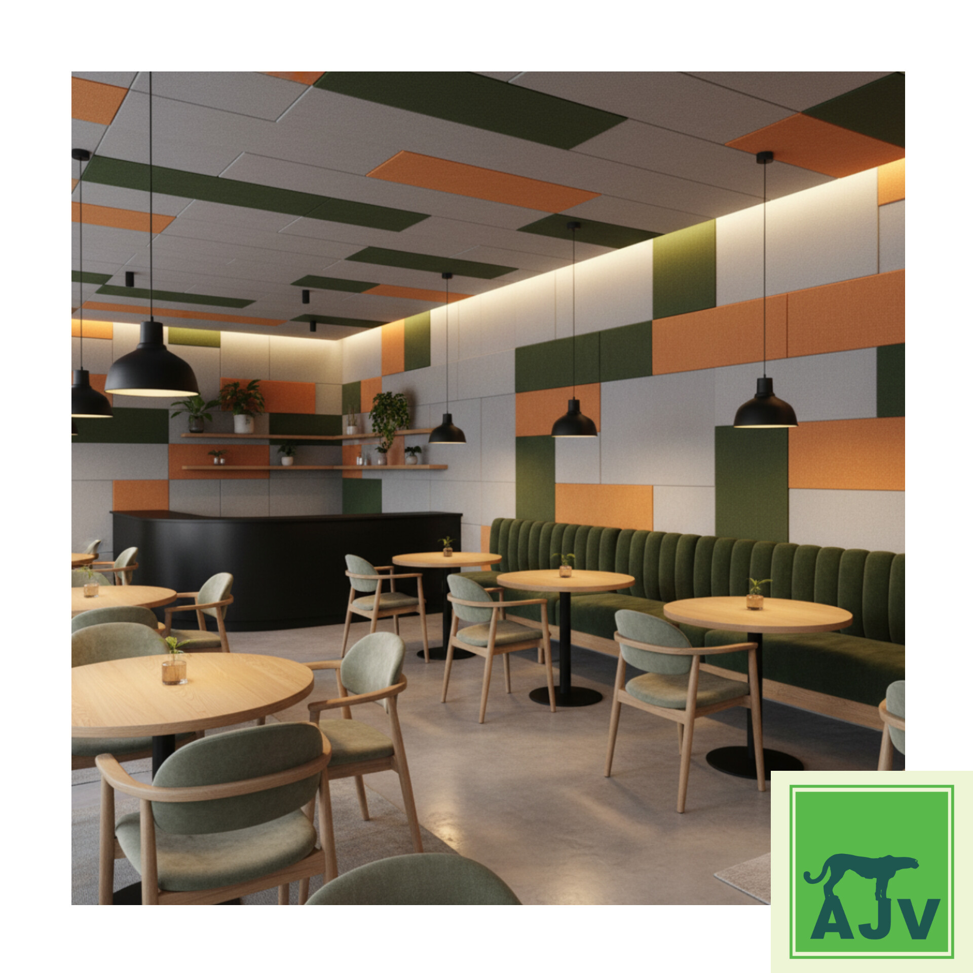 برند AJV با تولید پنلهایی مانند وول پنل، تایل آکوستیک سقفی، نمد ترموفیوز و فوم آکوستیکی توانسته است عملکرد آکوستیکی را با زیبایی دکوراتیو تلفیق کند.